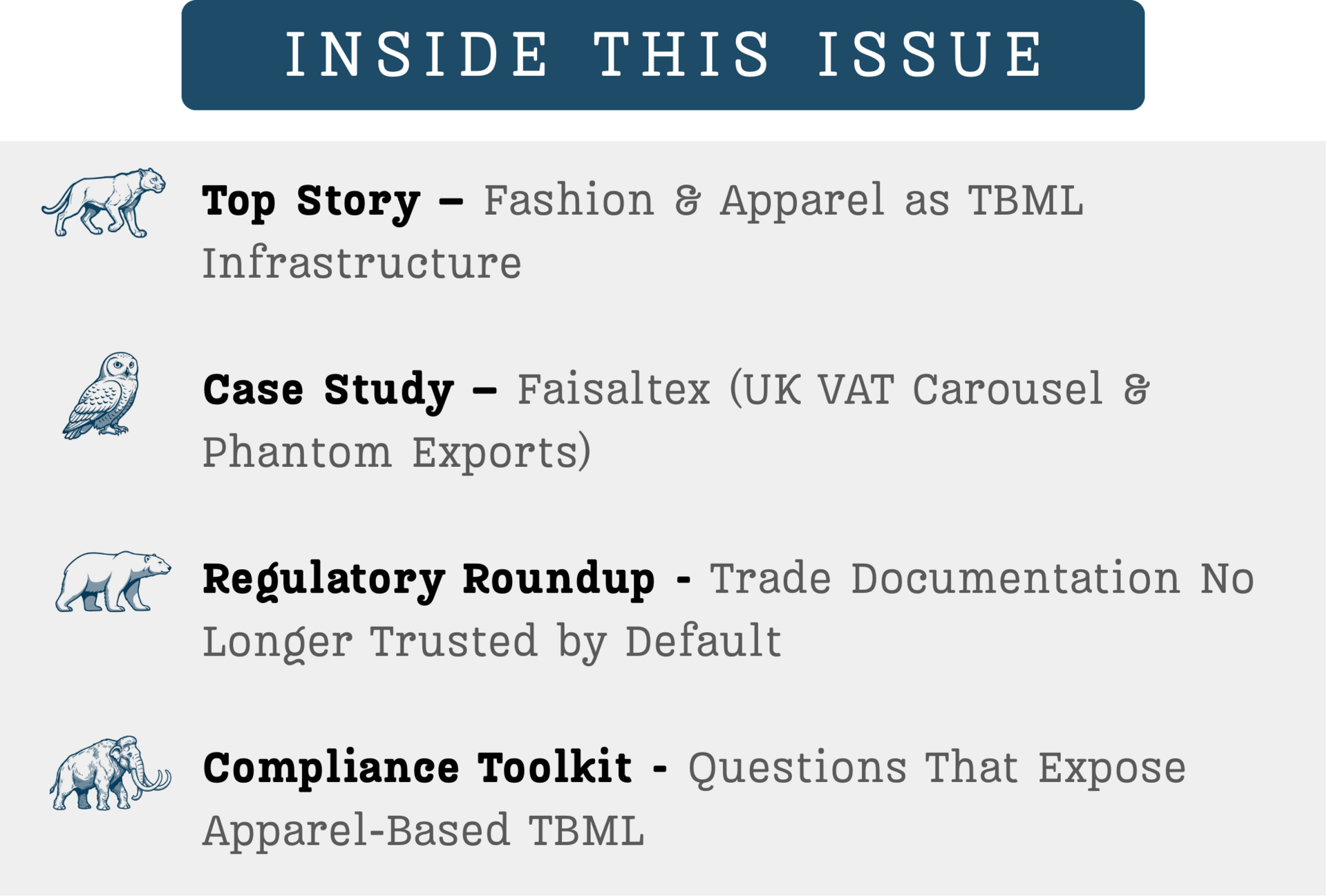 This issue examines how fashion and apparel supply chains can become effective laundering infrastructure. Not because clothing is high risk by nature, but because trade documentation, VAT systems, and bulk shipments are often trusted more than they are tested.